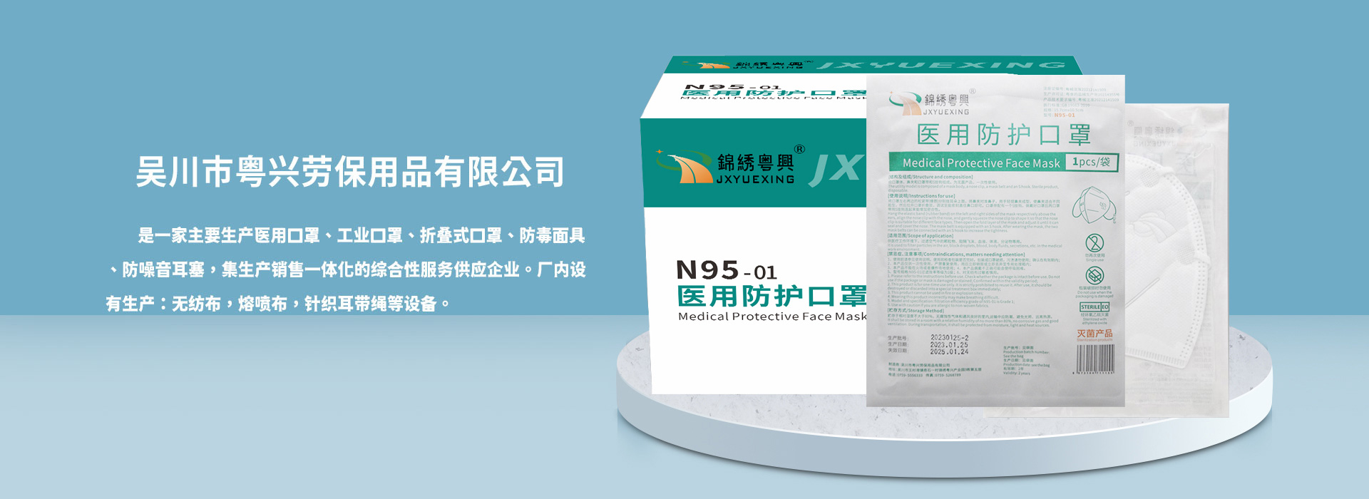 公司成立于2010年,位于廣東省經濟較為活躍的海濱城市-吳川市,廠房面積20000平方,擁有先進的生產設備、精準的檢測設備、精湛的生產技術、雄厚的生產能力并獲得相關的醫用資質以及工業防護資質。